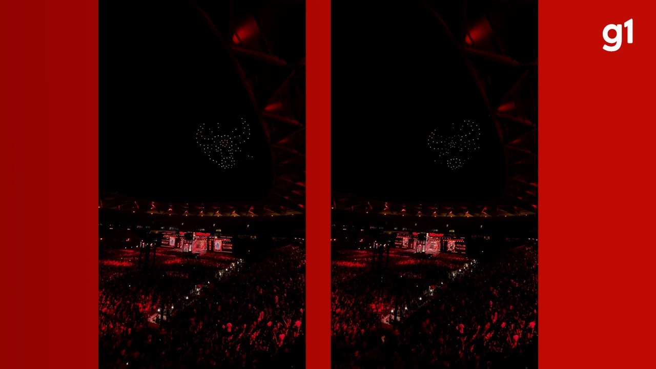 Show de drones forma Caprichoso e Garantido no DVD de Klessinha em Manaus