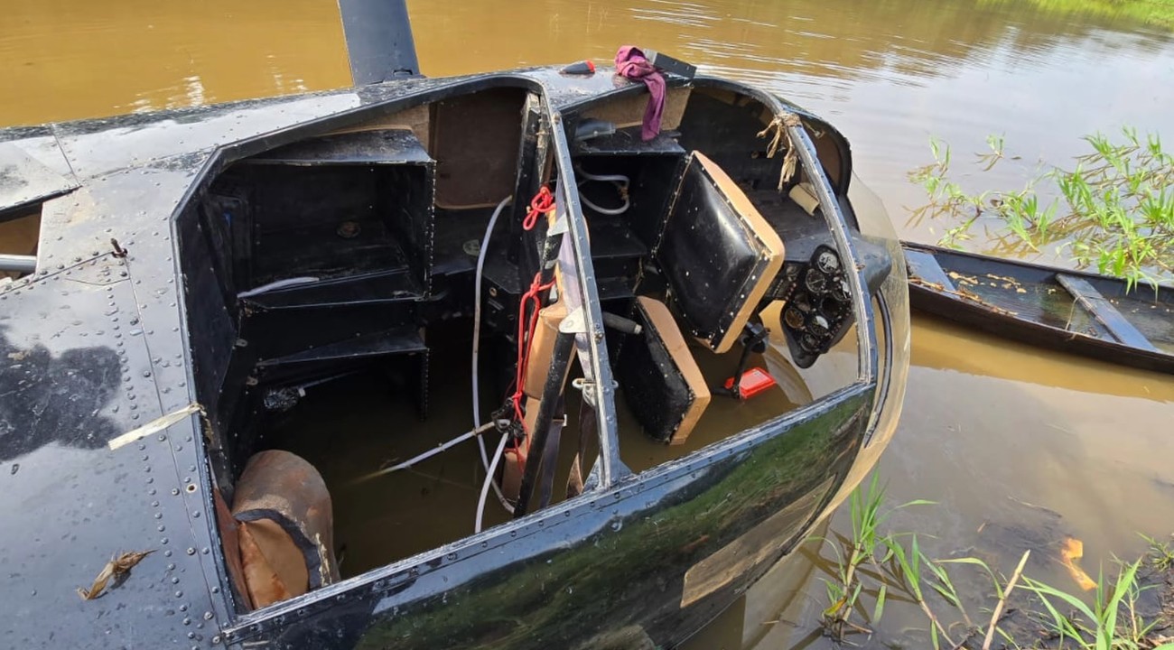Helicóptero com drogas é encontrado submerso em lago no interior do AM
